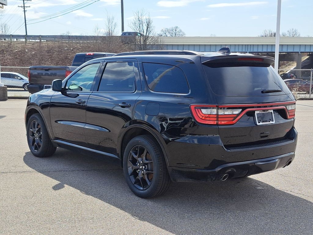 The striking exterior of the Durango GT Plus commands attention with its bold Dodge grille, sleek lines, and 20-inch Black Noise or Satin Carbon split 5-spoke alloy wheels. The available Blacktop Redline Package enhances the aggressive styling, while the power liftgate and integrated roof rail crossbars provide practical versatility.
